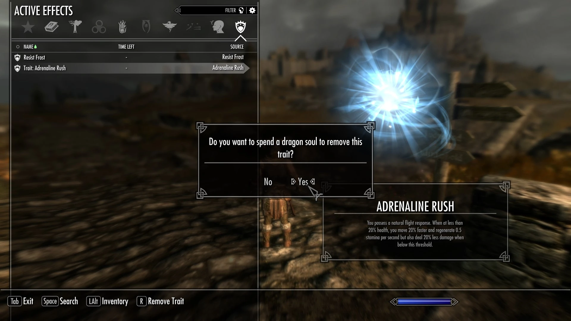 Да. Откройте меню Магия → Активные эффекты, наведите курсор на черту и нажмите R, чтобы её снять. Для этого потребуется душа дракона.