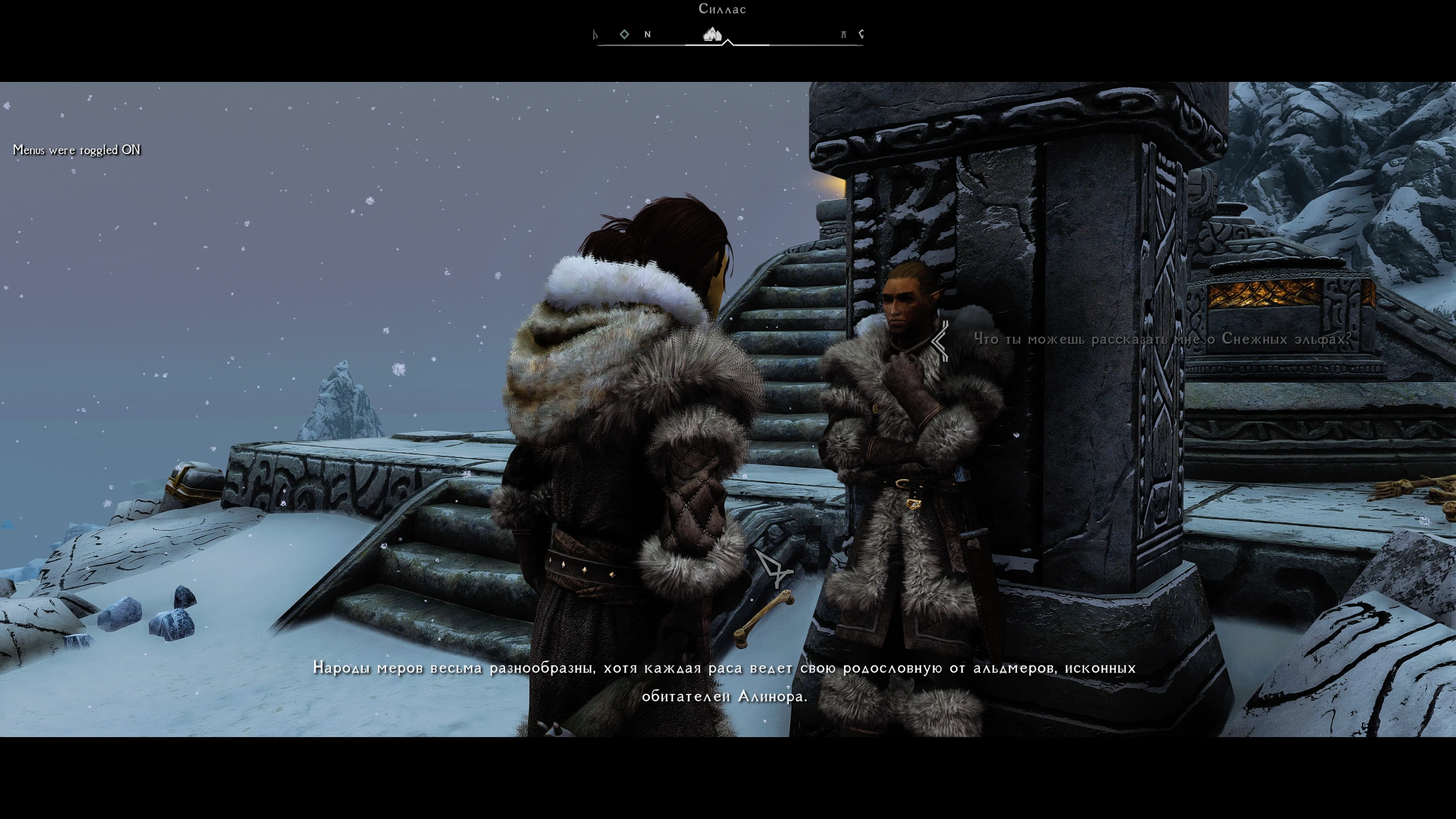 • Комментарий к квестам: Силлас реагирует на достижения игрока в квестах, связанных со Снежными Эльфами и Фалмерами, добавляя диалоги, соответствующие вашим открытиям.