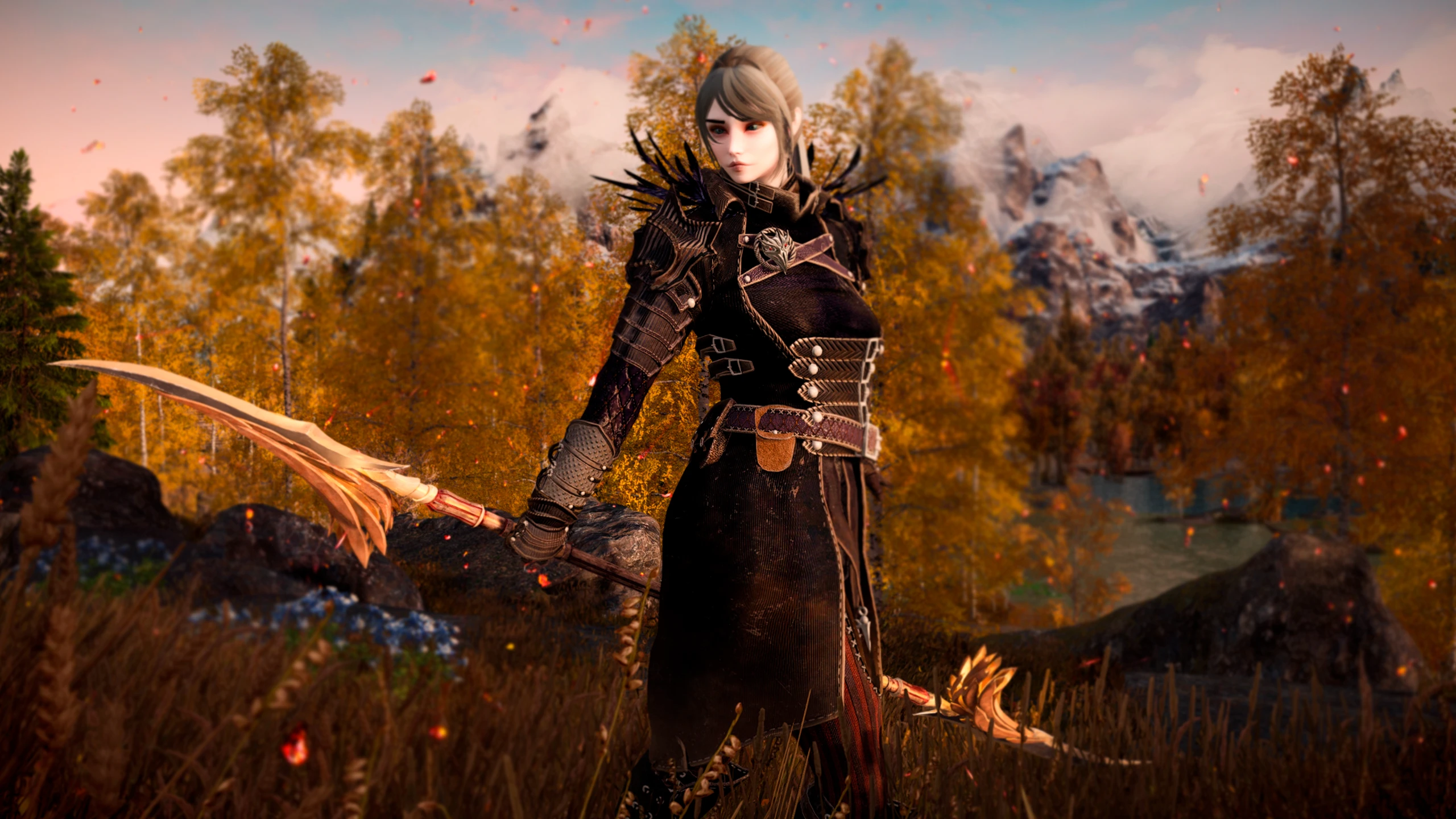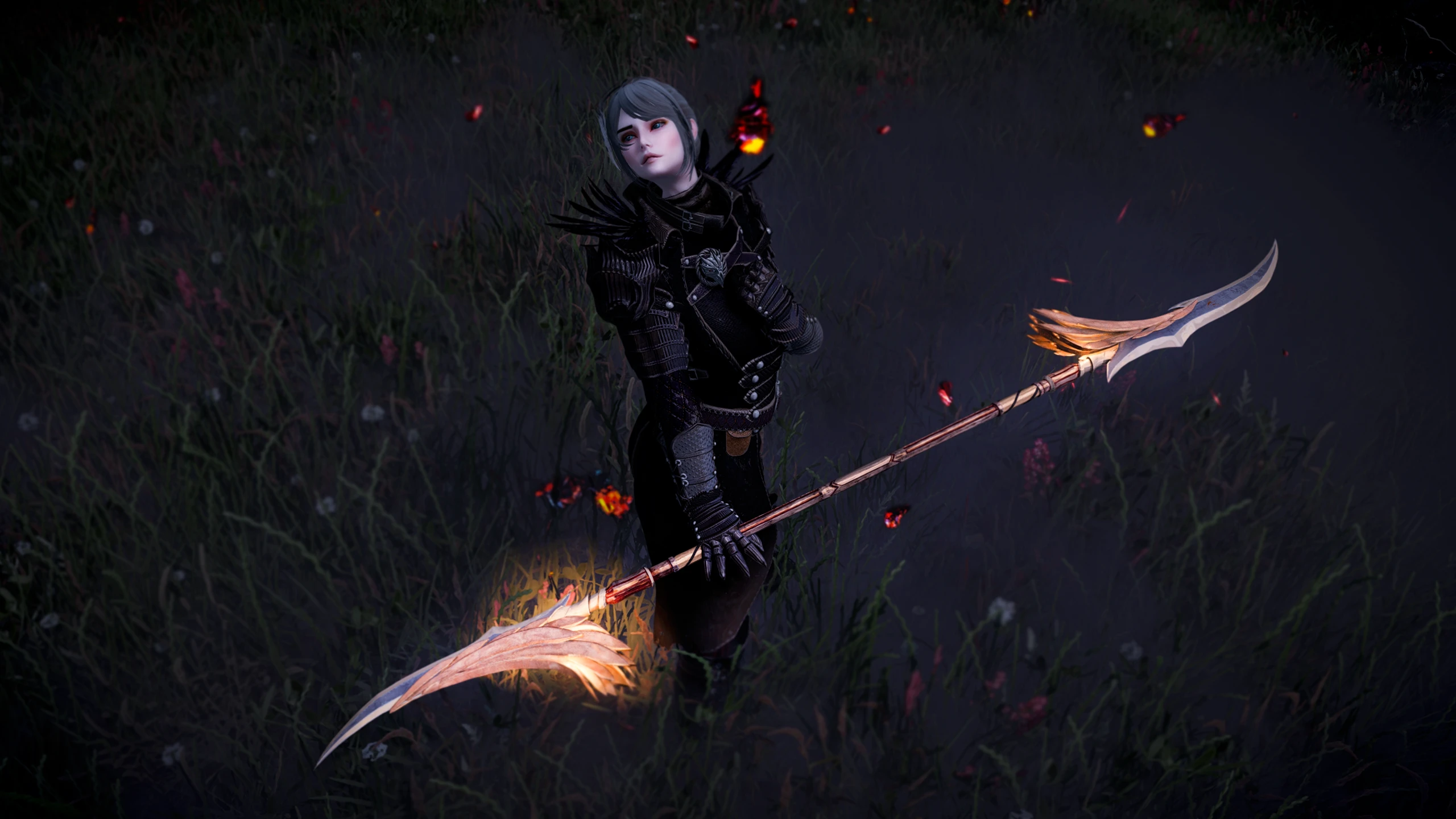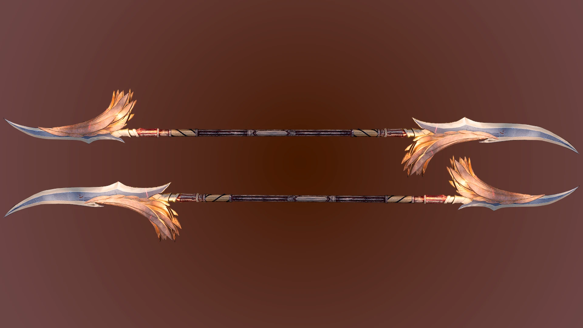 Перья на клинке — не просто украшение, а затвердевшие отголоски спектрального крыла. В бою оружие мягко светится янтарным светом, а пролитая кровь исчезает в шипении пара.