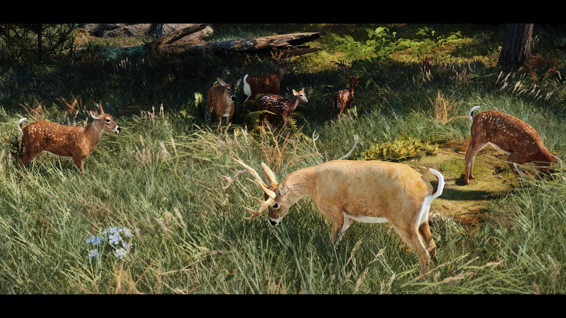 • Леса Скайрима: самки Whitetail и детёныши появляются чаще, самцы Whitetail и северные олени — редко, лоси не появляются
