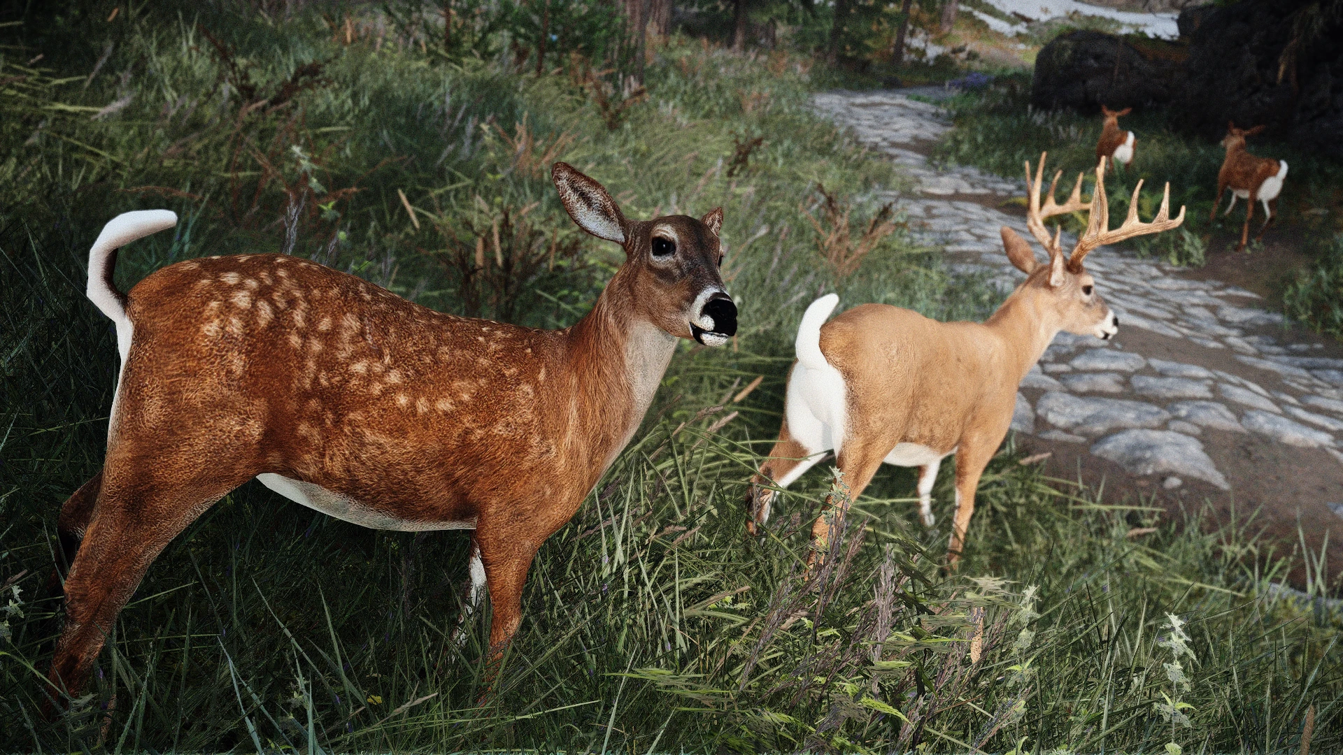 • Whitetail Deer: самцы, самки и детёныши с фотореалистичными моделями и текстурами