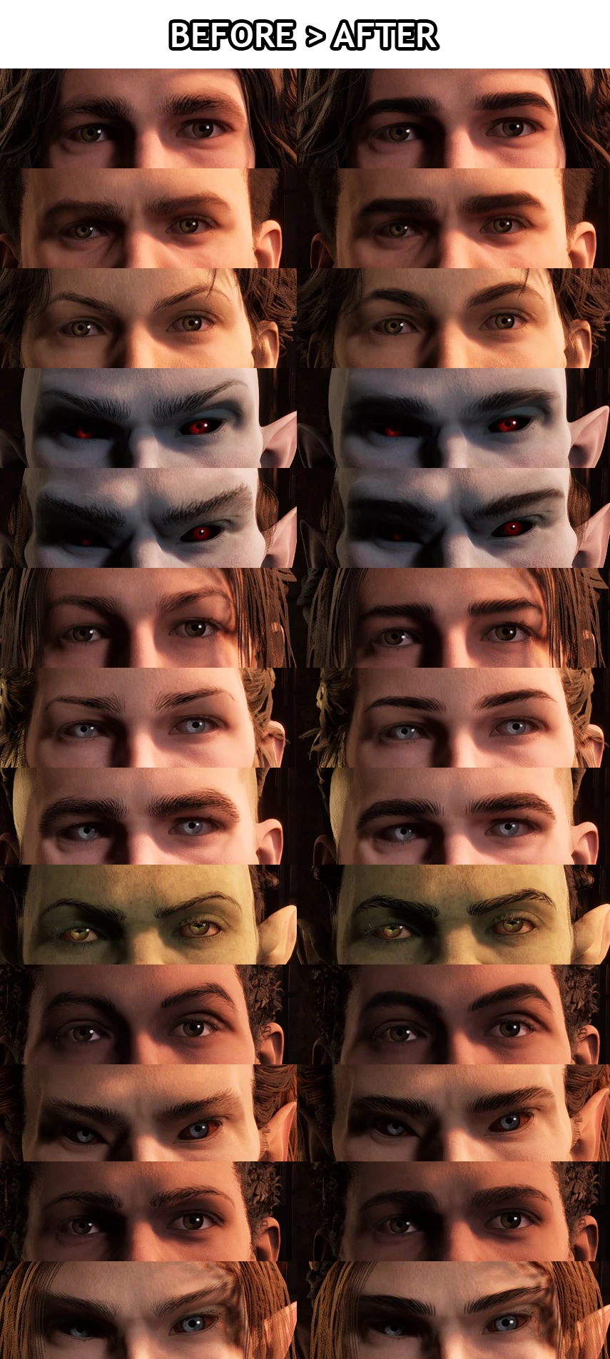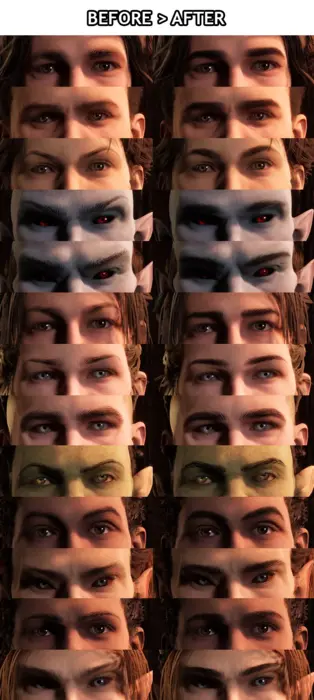 Eyebrows Retexture — визуальный мод для Oblivion Remastered, который полностью обновляет стандартные текстуры бровей у всех персонажей. Новые варианты выполнены вручную, обладают большей детализацией и аккуратным, естественным видом, сохраняя оригинальный стиль игры.