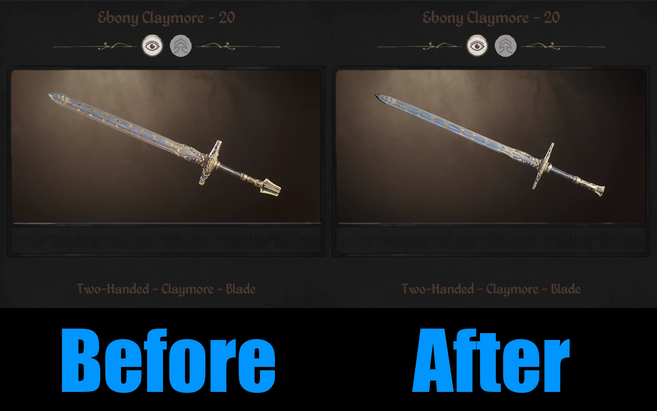 • Клеймор (Claymore): улучшена длина рукояти и расширены перекрестья, добавлен более сбалансированный вид.