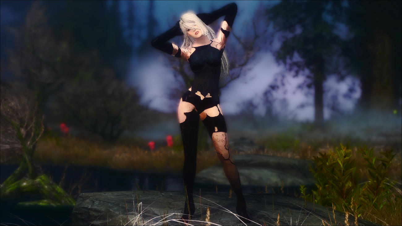 Сет одежды из NieR: Automata добавляет экипировку персонажей 2B и A2 для Skyrim. Включает маску, платье, юбку, перчатки, сапоги (с чулками и без), а также парики и новые причёски с поддержкой HDT-физики. Одежда полностью создаётся, улучшается и зачаровывается, доступна для тел CBBE и UNP. Сет А2 надевается целиком.